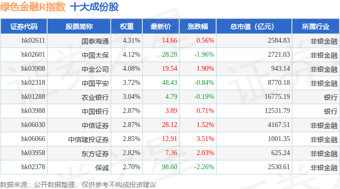 绿色金融R(480052)指数十大成份股详情如下: