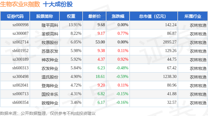 资金流向方面,生物农业R(480072)指数成份股当日主力资金净流入合计3843.93万元,游资资金净流出合计1.79亿元,散户资金净流入合计1.4亿元。成份股资金流向详情见下表: