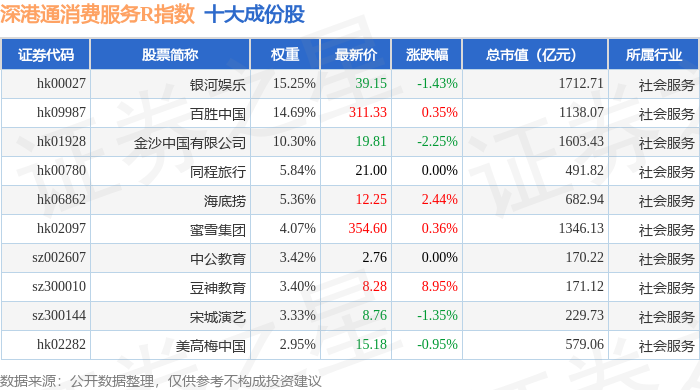 深港通消费服务R(483045)指数十大成份股详情如下: