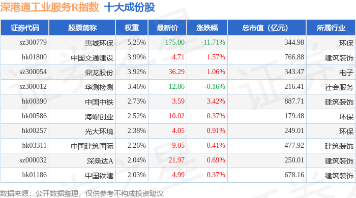 深港通工业服务R(483055)指数十大成份股详情如下: