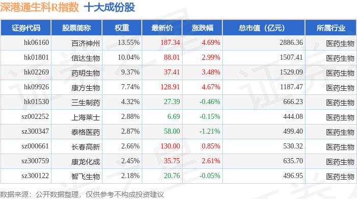 深港通生科R(483059)指数十大成份股详情如下: