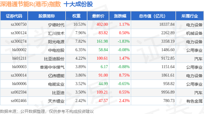 深港通节能R(港币)(483086)指数十大成份股详情如下: