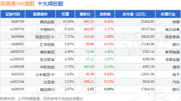 证券之星消息,9月30日,深港通50R(483091)指数报收于2610.53点,涨0.5%,成交1886.29亿元。当日该指数成份股中,上涨的有28家,快手-W以7.22%的涨幅领涨,下跌的有20家,分众传媒以3.36%的跌幅领跌。
