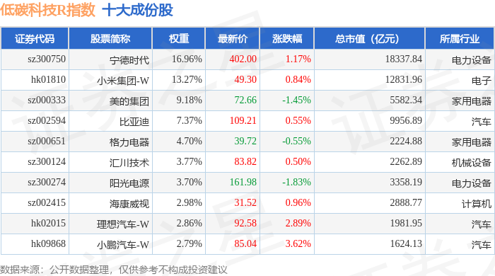 证券之星消息,9月30日,低碳科技R(483160)指数报收于4528.33点,涨1.09%,成交1573.52亿元。当日该指数成份股中,上涨的有35家,亿纬锂能以8.75%的涨幅领涨,下跌的有15家,欣旺达以2.17%的跌幅领跌。