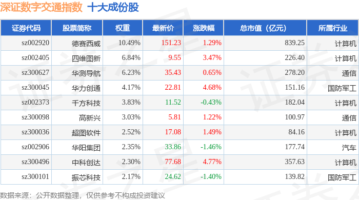 深证数字交通(970049)指数十大成份股详情如下: