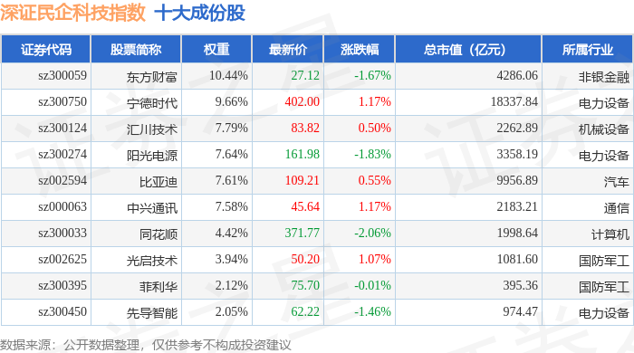 深证民企科技(970059)指数十大成份股详情如下:
