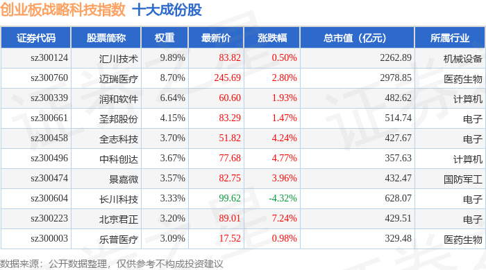 证券之星消息,9月30日,创业板战略科技(971004)指数报收于6815.11点,涨1.54%,成交526.33亿元,换手率3.6%。当日该指数成份股中,上涨的有38家,新雷能以20.0%的涨幅领涨,下跌的有12家,江丰电子以4.86%的跌幅领跌。