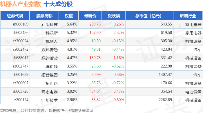 资金流向方面,机器人产业(980022)指数成份股当日主力资金净流入合计9.55亿元,游资资金净流出合计2.71亿元,散户资金净流出合计6.84亿元。成份股资金流向详情见下表: