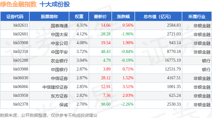资金流向方面,绿色金融(980052)指数成份股当日主力资金净流出合计31.67亿元,游资资金净流入合计10.4亿元,散户资金净流入合计21.28亿元。成份股资金流向详情见下表: