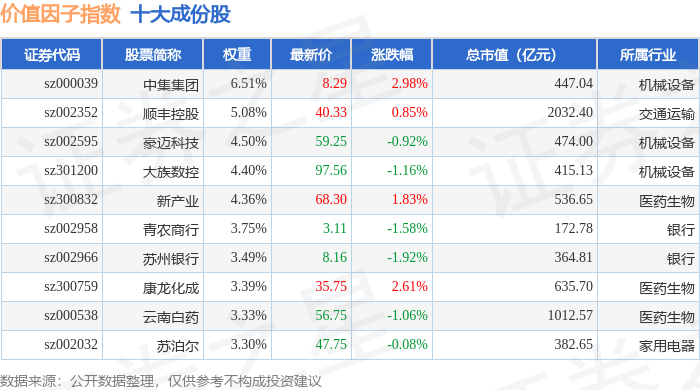 价值因子(980056)指数十大成份股详情如下: