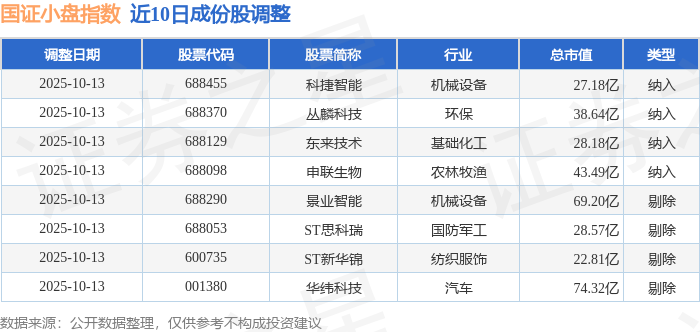 国证小盘(980202)指数十大成份股详情如下: