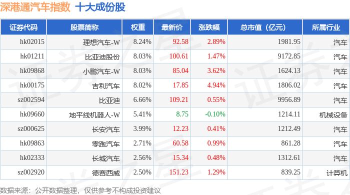 资金流向方面,深港通汽车(983039)指数成份股当日主力资金净流出合计1.69亿元,游资资金净流出合计3.68亿元,散户资金净流入合计5.37亿元。成份股资金流向详情见下表: