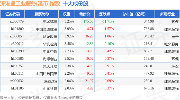 深港通工业服务(港币)(983056)指数十大成份股详情如下: