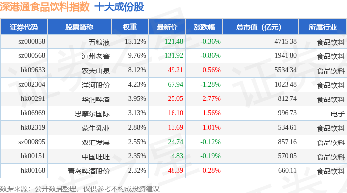深港通食品饮料(983065)指数十大成份股详情如下:
