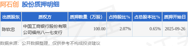 证券之星消息,阿石创(300706)9月30日公开信息显示,股东陈钦忠向中国工商银行股份有限公司福州八一七支行合计质押100.0万股,占总股本0.65%。质押详情见下表: