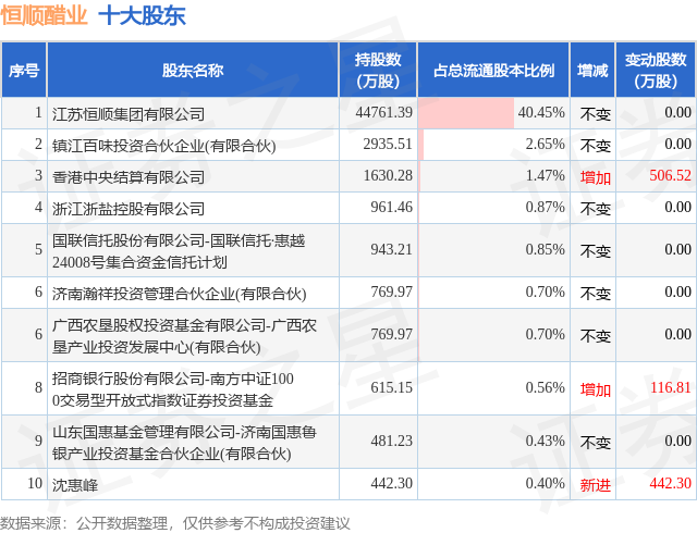 根据恒顺醋业2025年中报公布的十大股东详情如下: