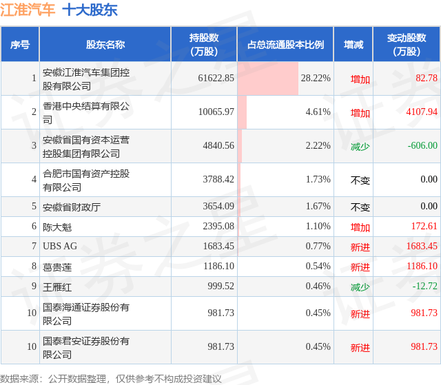 根据江淮汽车2025年中报公布的十大股东详情如下: