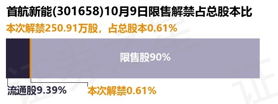 证券之星消息,根据市场公开信息整理,首航新能(301658)于10月9日将有250.91万股限售股份解禁,为公司首发机构配售股份,占公司总股本0.61%。(本次数据根据历史公告整理得出,实际情况以上市公司最新公告为准)本次解禁后,公司还有3.71亿股限售股份,占总股本90.0%。具体如下图所示:
