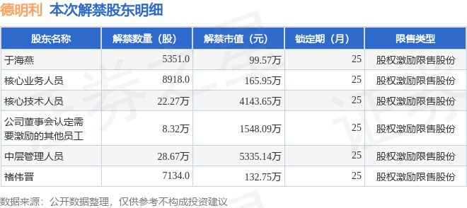 本次解禁涉及股东明细见下表: