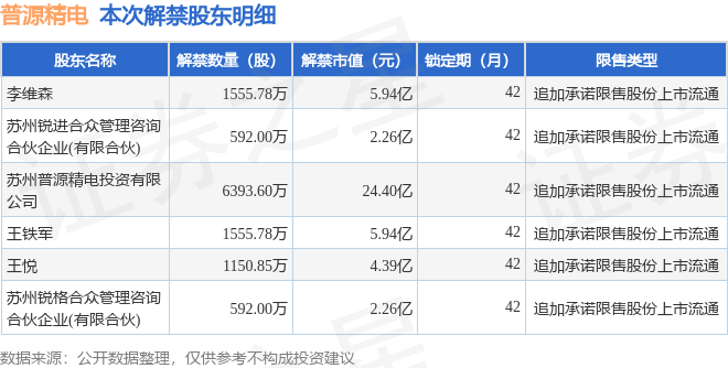 证券之星消息,根据市场公开信息整理,普源精电(688337)于10月9日将有1.18亿股限售股份解禁,为公司追加承诺限售股份上市流通,占公司总股本61.0%。(本次数据根据历史公告整理得出,实际情况以上市公司最新公告为准)最近一年内,该股累计解禁238.11万股,占总股本的1.23%。本次解禁后,公司还有758.82万股限售股份,占总股本3.91%。具体如下图所示: