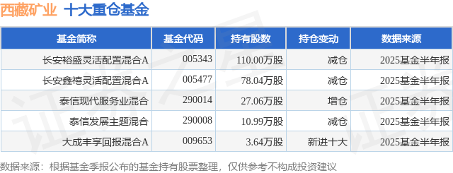 重仓西藏矿业的公募基金请见下表: