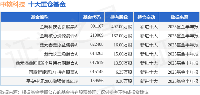 根据2025基金半年报公募基金重仓股数据,重仓该股的公募基金共7家,其中持有数量最多的公募基金为金鹰基金的金鹰科技创新股票A。金鹰科技创新股票A目前规模为31.9亿元,最新净值2.0965(9月30日),较上一交易日上涨1.3%,近一年上涨66.07%。该公募基金现任基金经理为陈颖。陈颖在任的基金产品包括:金鹰核心资源混合A,管理时间为2019年1月26日至今,期间收益率为279.72%;金鹰红利价值混合A,管理时间为2020年4月28日至今,期间收益率为190.35%;金鹰科技致远混合A,管理时间为2024年3月19日至今,期间收益率为101.85%。