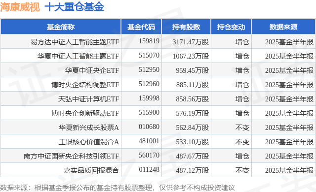 根据2025基金半年报公募基金重仓股数据,重仓该股的公募基金共163家,其中持有数量最多的公募基金为易方达基金的易方达中证人工智能主题ETF。易方达中证人工智能主题ETF目前规模为165.78亿元,最新净值1.5394(9月30日),较上一交易日上涨0.34%,近一年上涨86.39%。该公募基金现任基金经理为张湛。张湛在任的基金产品包括:易方达中证科技50ETF,管理时间为2020年3月16日至今,期间收益率为47.5%;易方达中证万得生物科技指数(LOF)C,管理时间为2020年12月3日至今,期间收益率为-33.1%;易方达中证生物科技主题ETF,管理时间为2021年1月14日至今,期间收益率为-42.46%。