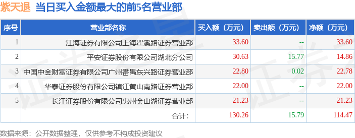 证券小知识:龙虎榜是交易所披露的竞价交易公开信息,现身龙虎榜的个股都是当日最为活跃的个股,是投资者日常重点关注的数据。交易所公布当日买入金额和卖出金额前五名的席位,其中一些席位代表特殊意义,如机构专用席位是指基金专用席位、券商自营专用席位、社保专用席位、券商理财专用席位、保险机构专用席位、保险机构租用席位、QFII专用席位等机构投资者买卖证券的专用通道和席位。深股通专用、沪股通专用为北向资金的交易席位。从龙虎榜数据可以发现和研究机构、游资和散户的资金动向。一些营业部席位经常上榜,市场知名度较高,投资者整理代表散户、游资、量化等不同资金的营业部席位。