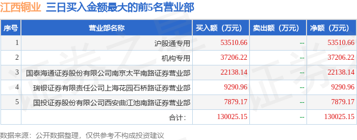 从龙虎榜公布的三日买卖数据来看,机构合计净买入3.72亿元,北向资金合计净买入1315.6万元。作手新一、曲江池等知名游资榜上有名。(知名游资作手新一一般指国泰海通证券股份有限公司南京太平南路证券营业部席位、知名游资曲江池一般指国投证券股份有限公司西安曲江池南路证券营业部席位,根据市场资料整理,仅供参考)