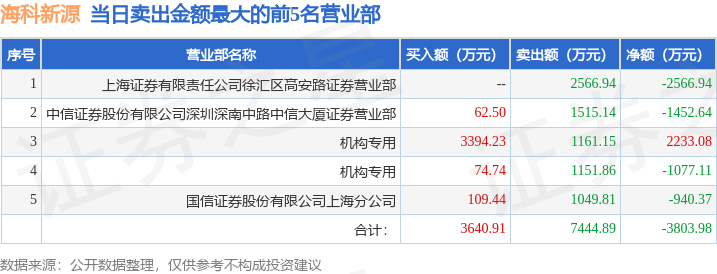 证券之星消息,沪深交易所2025年10月9日公布的交易公开信息显示,海科新源(301292)因日涨幅达到15%的前5只证券,日换手率达到30%的前5只证券,连续三个交易日内,涨幅偏离值累计达到30%的证券登上龙虎榜。此次是近5个交易日内第1次上榜。