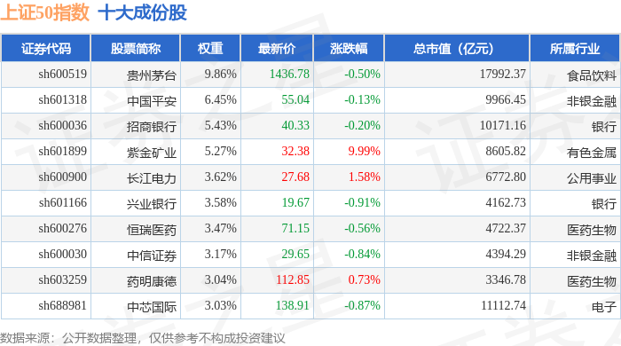 证券之星消息,10月9日,上证50(000016)指数报收于3020.6点,涨1.06%,成交2319.23亿元,换手率0.45%。当日该指数成份股中,上涨的有32家,洛阳钼业以10.0%的涨幅领涨,下跌的有16家,赛力斯以6.74%的跌幅领跌。