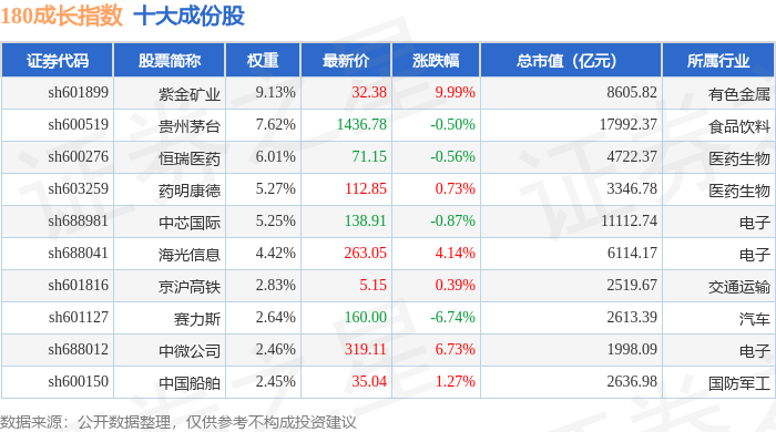 180成长(000028)指数十大成份股详情如下: