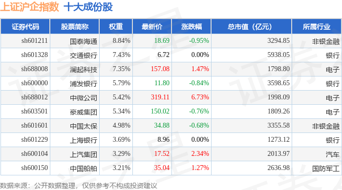 上证沪企(000062)指数十大成份股详情如下: