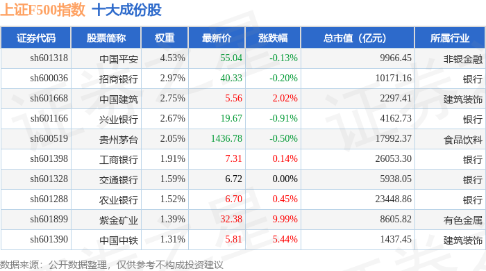 上证F500(000100)指数十大成份股详情如下: