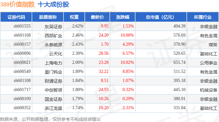证券之星消息,10月9日,380价值(000118)指数报收于9992.26点,涨2.09%,成交544.91亿元,换手率2.07%。当日该指数成份股中,上涨的有89家,中国核建以10.06%的涨幅领涨,下跌的有30家,华发股份以5.65%的跌幅领跌。