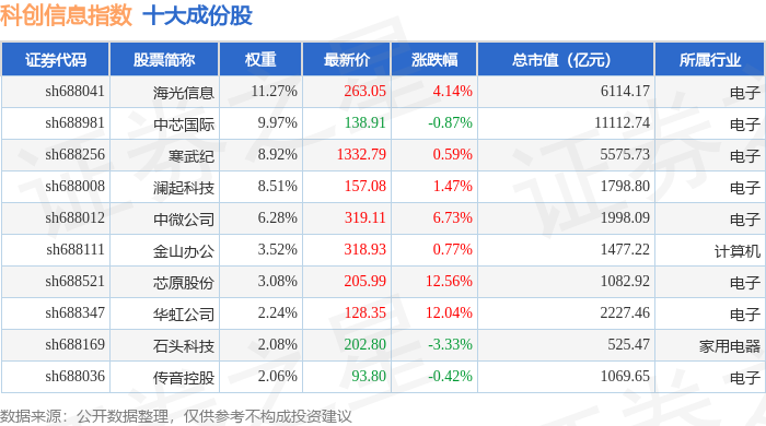 证券之星消息,10月9日,科创信息(000682)指数报收于2238.71点,涨3.02%,成交1586.24亿元,换手率4.8%。当日该指数成份股中,上涨的有39家,燕东微以18.48%的涨幅领涨,下跌的有11家,联芸科技以5.09%的跌幅领跌。