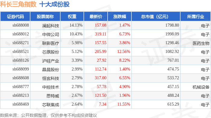 科长三角(000695)指数十大成份股详情如下: