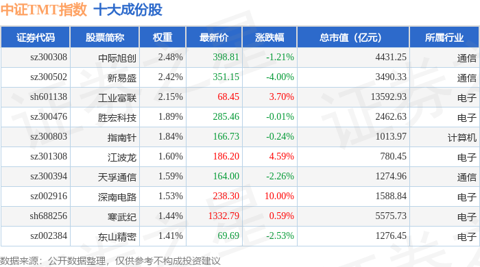 证券之星消息,10月9日,中证TMT(000998)指数报收于3125.69点,涨2.37%,成交4787.59亿元,换手率2.93%。当日该指数成份股中,上涨的有78家,晶合集成以13.92%的涨幅领涨,下跌的有20家,光线传媒以10.53%的跌幅领跌。
