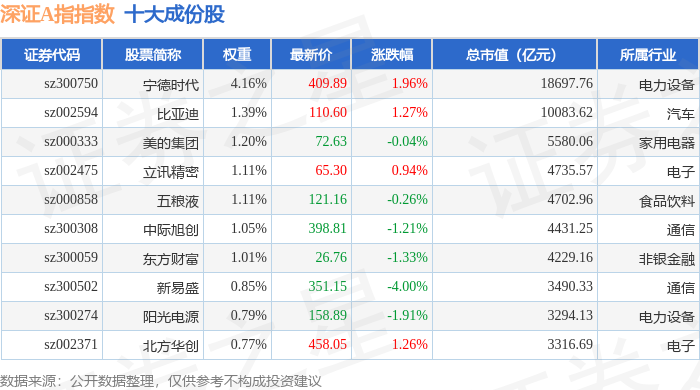 资金流向方面,深证A指(399107)指数成份股当日主力资金净流出合计109.55亿元,游资资金净流入合计24.08亿元,散户资金净流入合计85.46亿元。成份股资金流向详情见下表: