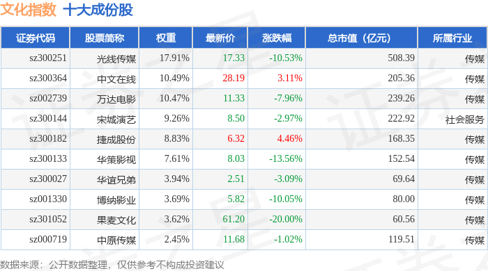 资金流向方面,文化指数(399248)成份股当日主力资金净流出合计6.05亿元,游资资金净流入合计7599.23万元,散户资金净流入合计5.29亿元。成份股资金流向详情见下表: