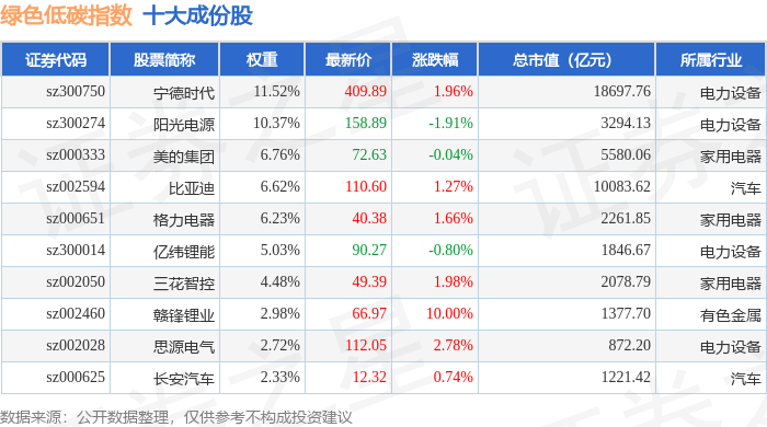 绿色低碳(399258)指数十大成份股详情如下: