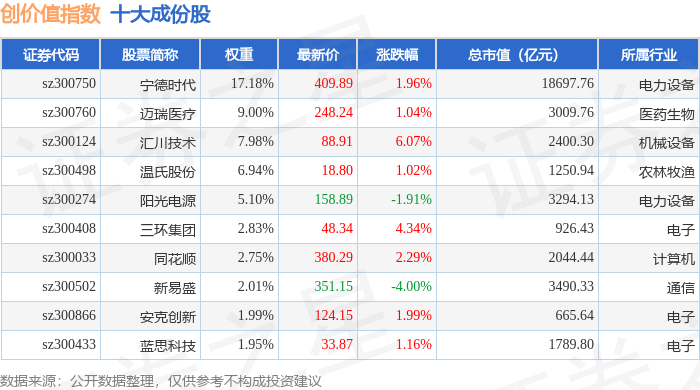 证券之星消息,10月9日,创价值(399295)指数报收于5860.29点,涨2.0%,成交1537.07亿元,换手率3.59%。当日该指数成份股中,上涨的有38家,信维通信以14.73%的涨幅领涨,下跌的有12家,新易盛以4.0%的跌幅领跌。