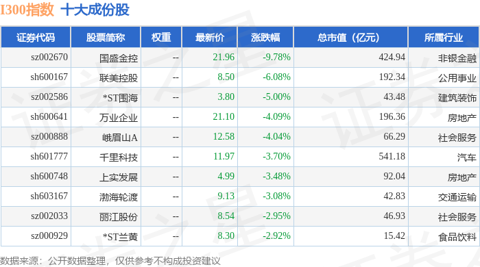 资金流向方面,I300(399416)指数成份股当日主力资金净流出合计12.71亿元,游资资金净流出合计11.07亿元,散户资金净流入合计23.78亿元。成份股资金流向详情见下表: