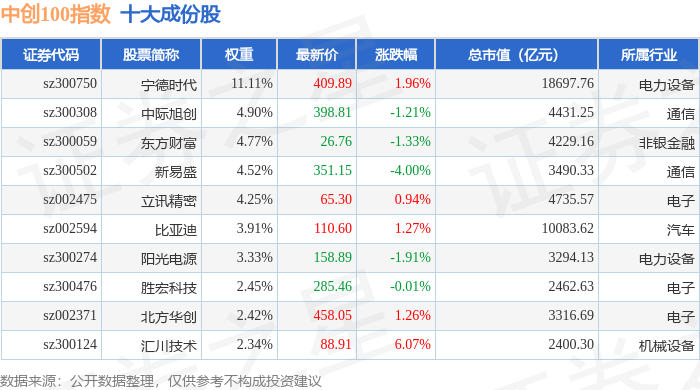 证券之星消息,10月9日,中创100(399612)指数报收于2834.57点,涨1.22%,成交3723.4亿元,换手率2.79%。当日该指数成份股中,上涨的有68家,通富微电以10.01%的涨幅领涨,下跌的有31家,光线传媒以10.53%的跌幅领跌。
