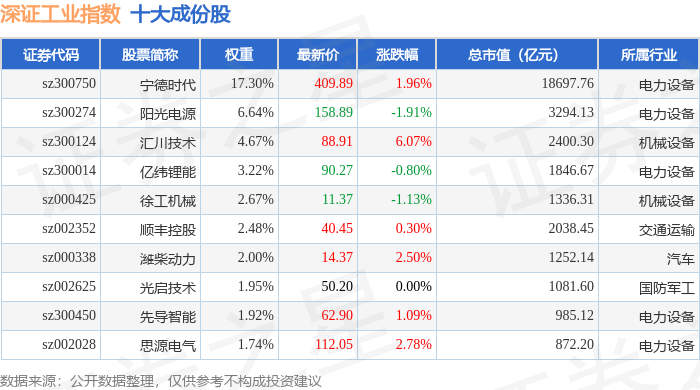 证券之星消息,10月9日,深证工业(399615)指数报收于4262.86点,涨1.54%,成交2107.86亿元,换手率3.19%。当日该指数成份股中,上涨的有116家,英杰电气以20.01%的涨幅领涨,下跌的有42家,惠城环保以6.37%的跌幅领跌。