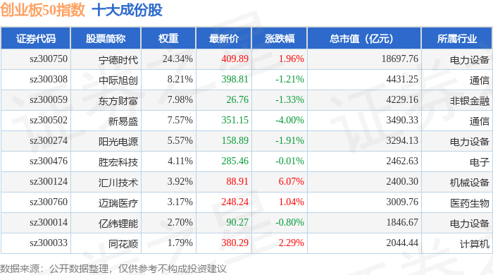 创业板50(399673)指数十大成份股详情如下: