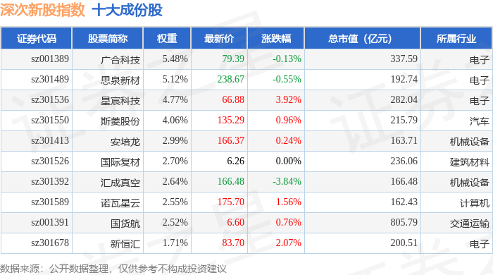近10日内深次新股(399678)指数成份股做了调整,新纳入了1只股票。