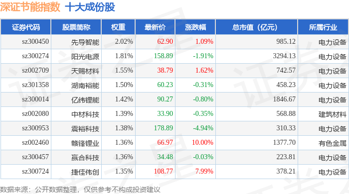 深证节能(399695)指数十大成份股详情如下: