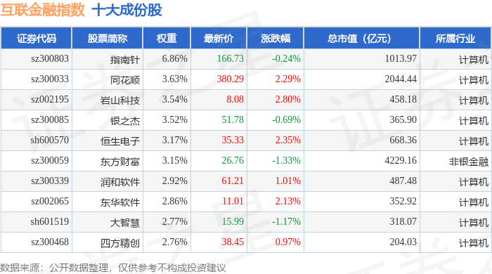 资金流向方面,互联金融(399805)指数成份股当日主力资金净流出合计35.71亿元,游资资金净流入合计12.38亿元,散户资金净流入合计23.34亿元。成份股资金流向详情见下表: