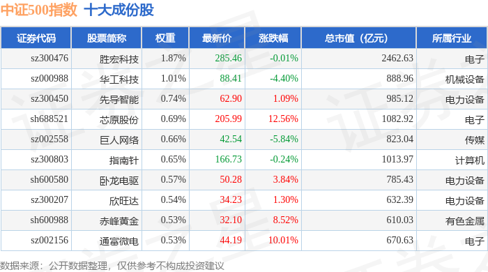 证券之星消息,10月9日,中证500(399905)指数报收于7548.92点,涨1.84%,成交5357.57亿元,换手率2.5%。当日该指数成份股中,上涨的有359家,西部超导以20.0%的涨幅领涨,下跌的有137家,光线传媒以10.53%的跌幅领跌。
